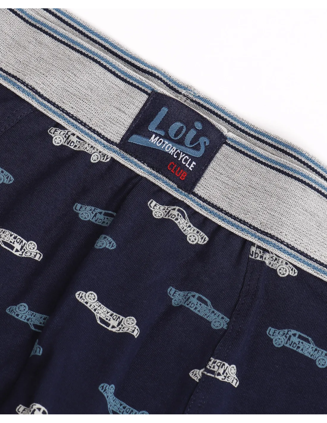 Cuenta con una goma elástica personalizada de la marca Lois para un ajuste perfecto.
