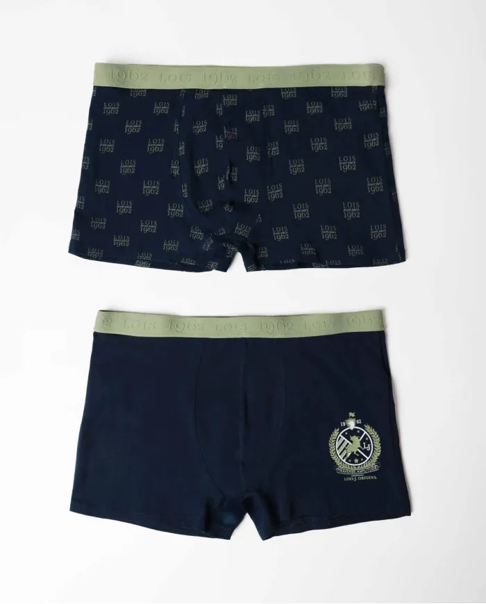 Calzoncillo/Boxer para hombre, de algodón elástico, en dos combinaciones de tejido: estampado y liso, en color marino. Encuentra este boxer hombre para hombre en Lovehomewear, donde la comodidad y el estilo se combinan con la mejor calidad.