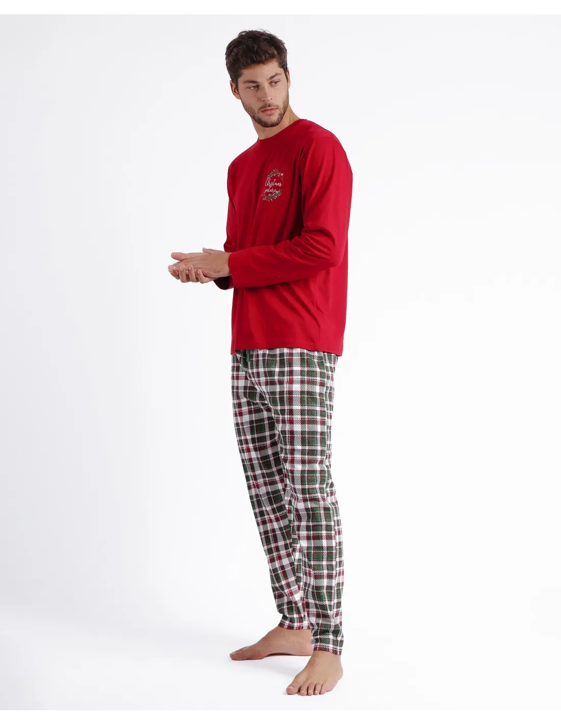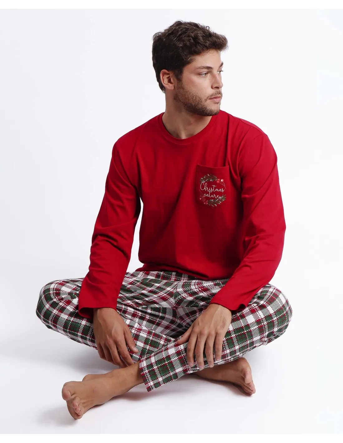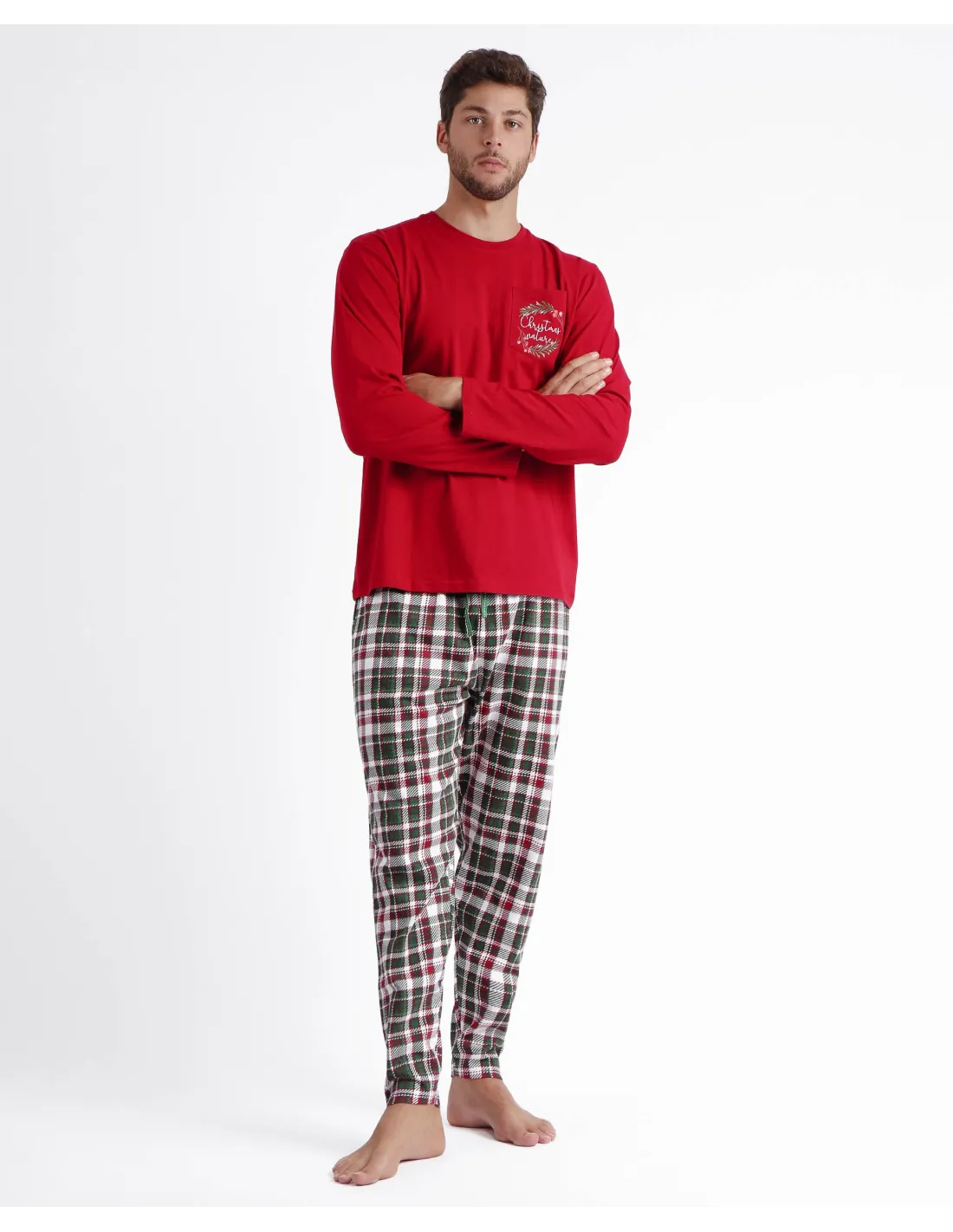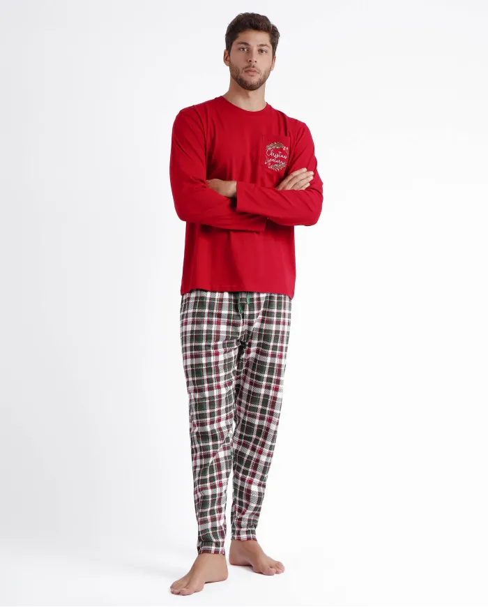 Pijama de punto de algodón, de manga larga, cuello redondo y pantalón largo. Encuentra este pijamas hombre para hombre en Lovehomewear, donde la comodidad y el estilo se combinan con la mejor calidad.