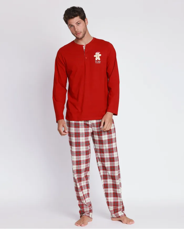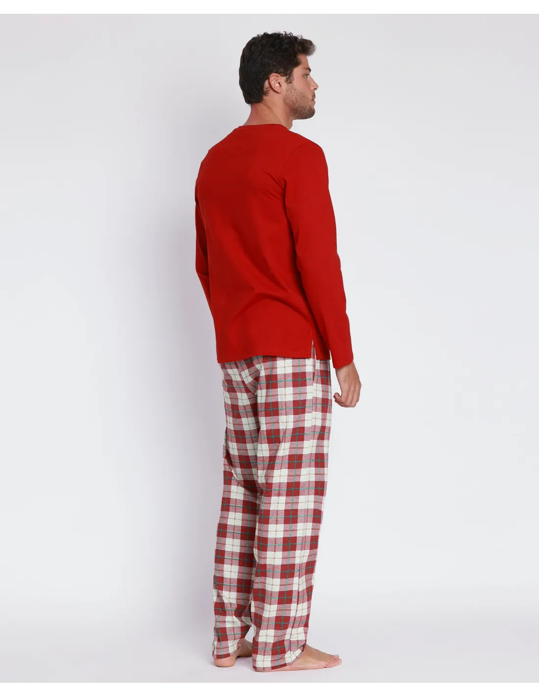 Pijama de punto de algodón afelpado, de manga larga, cuello con tapeta con botones y pantalón largo. Encuentra este pijamas hombre para hombre en Lovehomewear, donde la comodidad y el estilo se combinan con la mejor calidad.