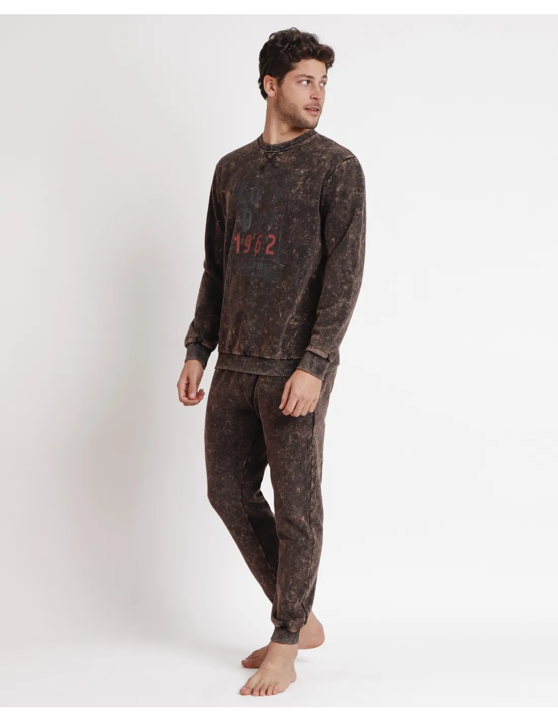 Pijama de tejido felpa, tipo chándal, de manga larga, cuello redondo y pantalón largo. Encuentra este pijamas hombre para hombre en Lovehomewear, donde la comodidad y el estilo se combinan con la mejor calidad.