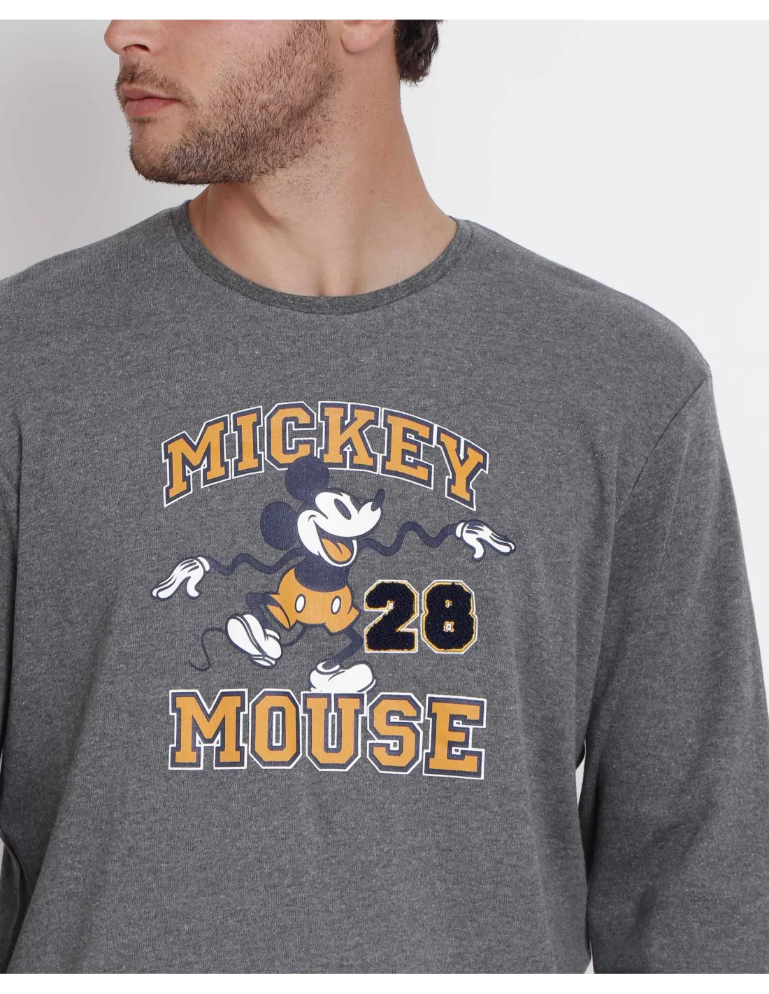 Camiseta de punto interlock vigoré, de color gris jaspe, con detalles bordados en rizo, personalizada de la marca Disney.