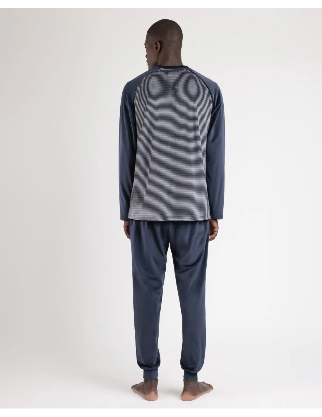 Pijama de tejido especial de terciopelo elástico, de manga larga, cuello con tapeta con botones y pantalón largo. Encuentra este pijamas hombre para hombre en Lovehomewear, donde la comodidad y el estilo se combinan con la mejor calidad.