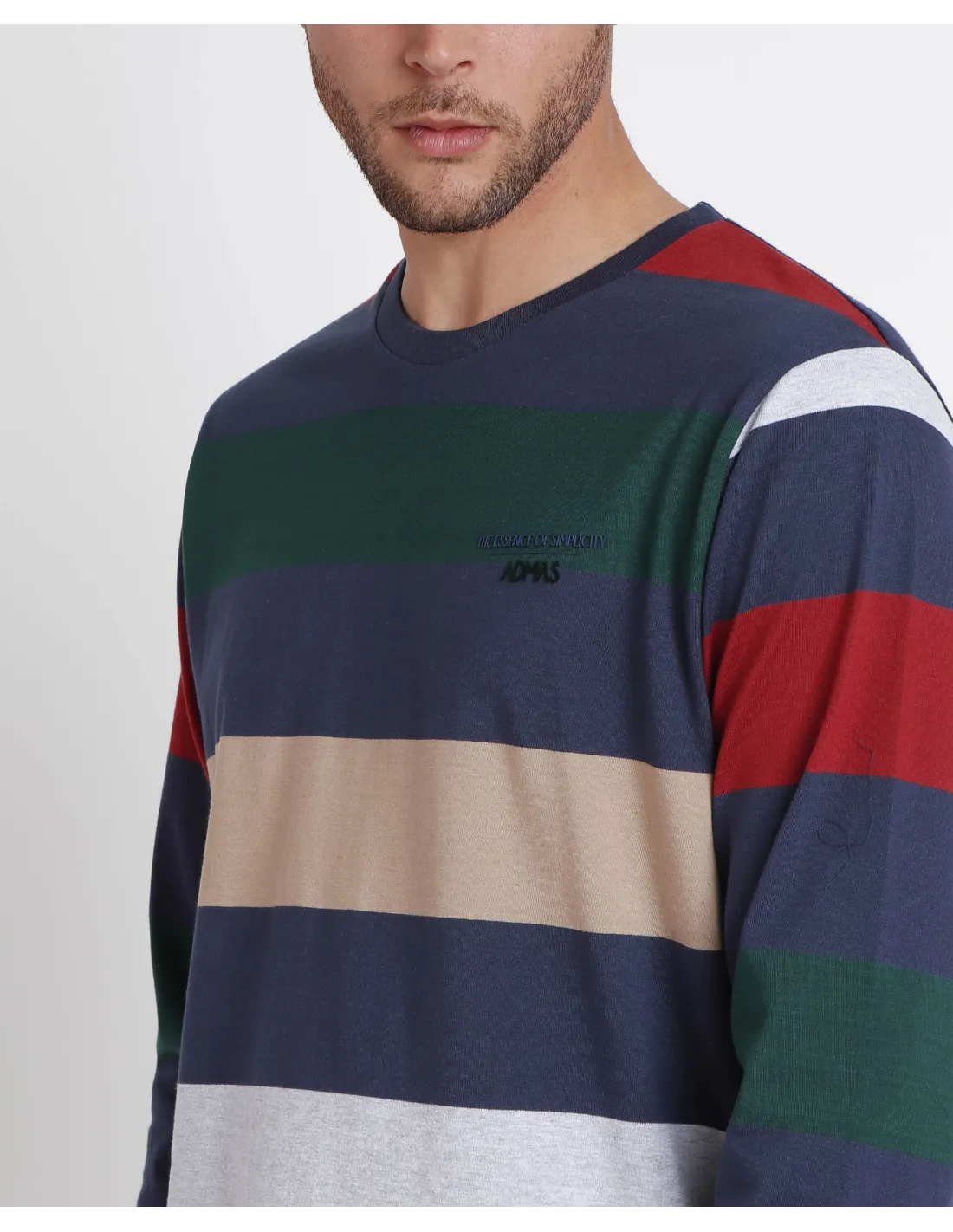 Camiseta de punto, de raya tejida, de color marino, con detalles en relieve, personalizada de la marca Admas.