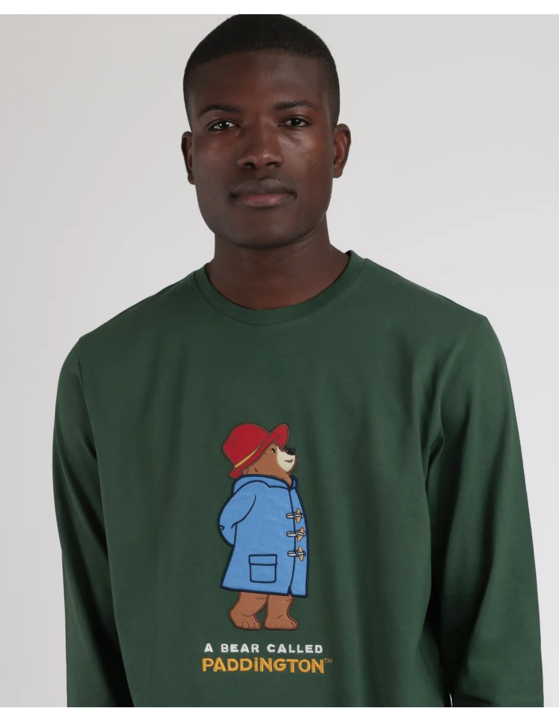 Camiseta de punto, de color verde, con dibujo estampado con detalles bordados, personalizada de la marca Paddington.