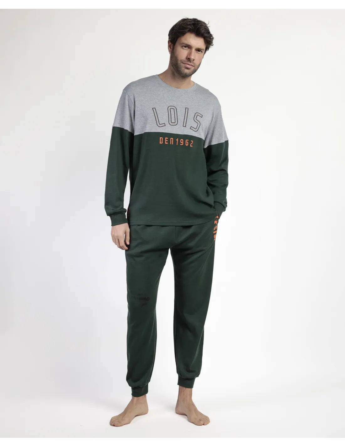 Pijama de punto de algodón, de manga larga, cuello redondo y pantalón largo. Encuentra este pijamas hombre para hombre en Lovehomewear, donde la comodidad y el estilo se combinan con la mejor calidad.