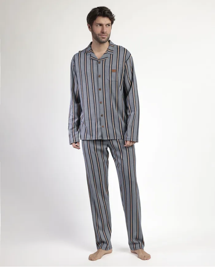 Pijama abierto de punto de algodón, de manga larga, cuello de solapa y pantalón largo. Encuentra este pijamas hombre para hombre en Lovehomewear, donde la comodidad y el estilo se combinan con la mejor calidad.