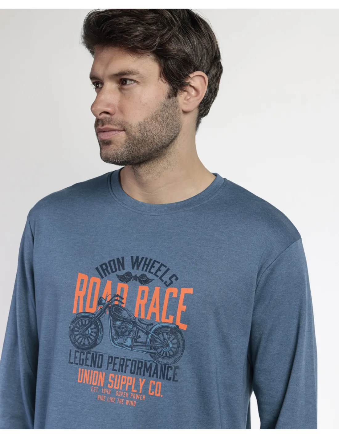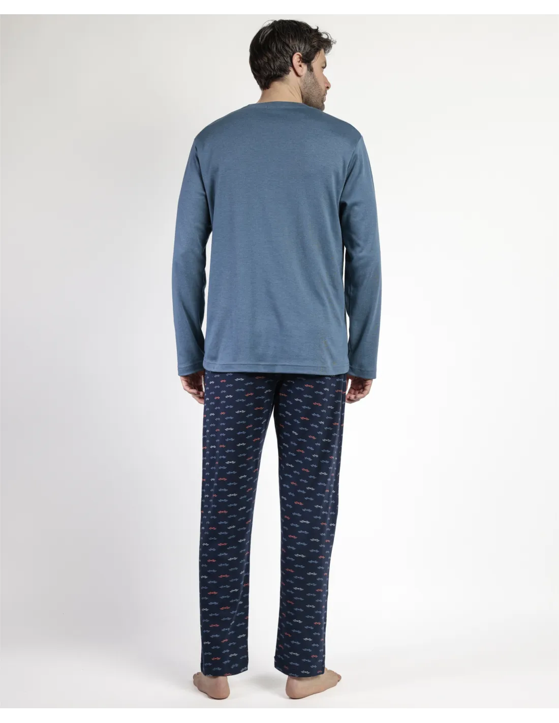 Pijama de punto de algodón, de manga larga, cuello redondo y pantalón largo. Encuentra este pijamas hombre para hombre en Lovehomewear, donde la comodidad y el estilo se combinan con la mejor calidad.