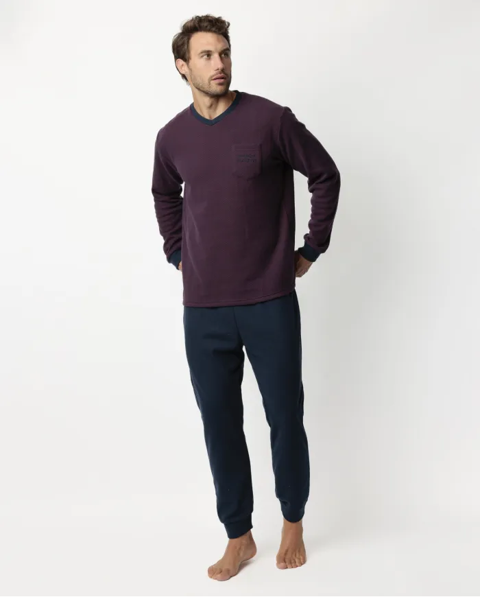 Pijama de punto milano vigoré, de manga larga, cuello pico y pantalón largo. Encuentra este pijamas hombre para hombre en Lovehomewear, donde la comodidad y el estilo se combinan con la mejor calidad.