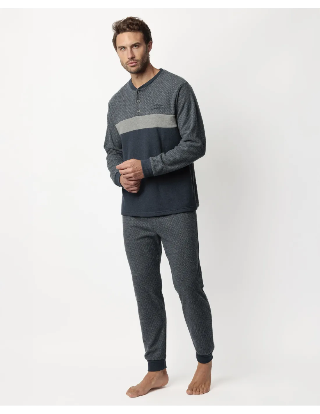 Pijama de punto milano vigoré, de manga larga, cuello con tapeta con botones y pantalón largo. Encuentra este pijamas hombre para hombre en Lovehomewear, donde la comodidad y el estilo se combinan con la mejor calidad.