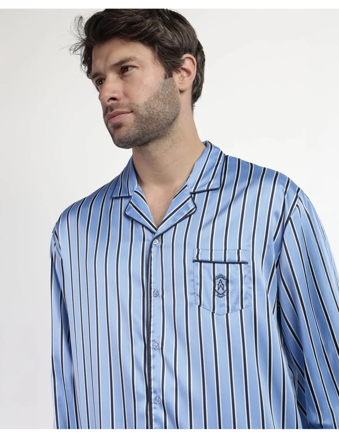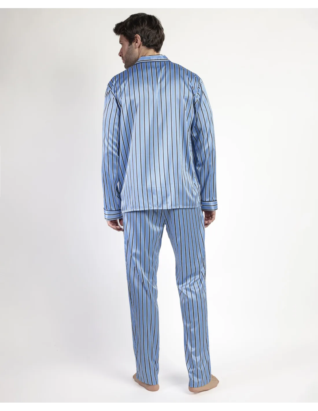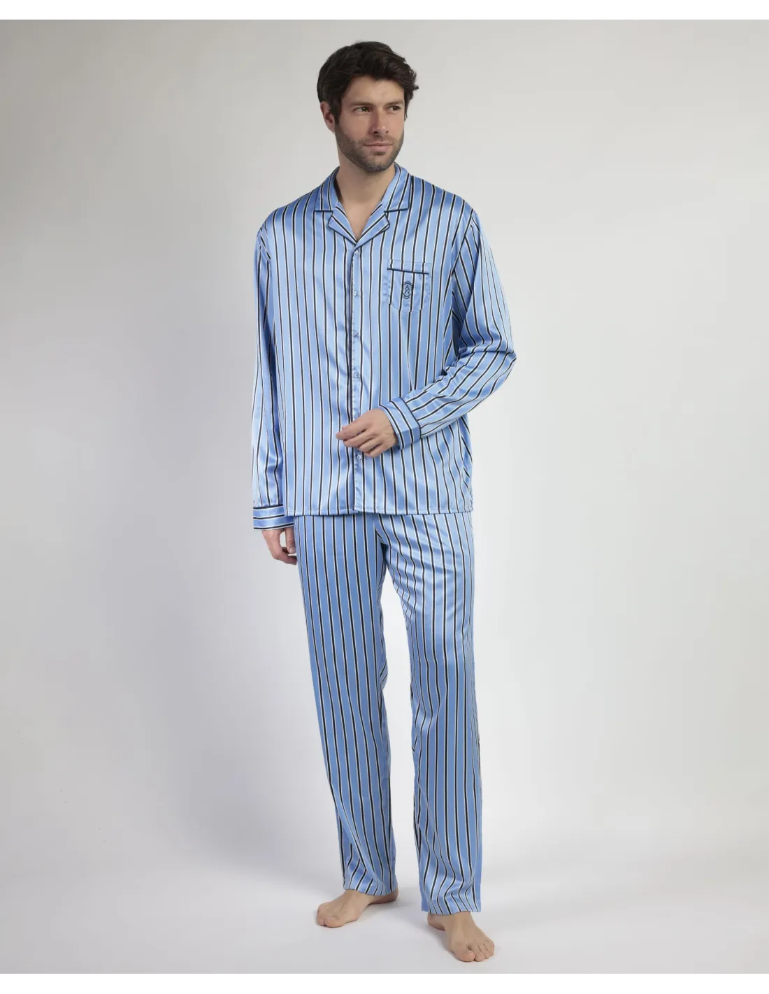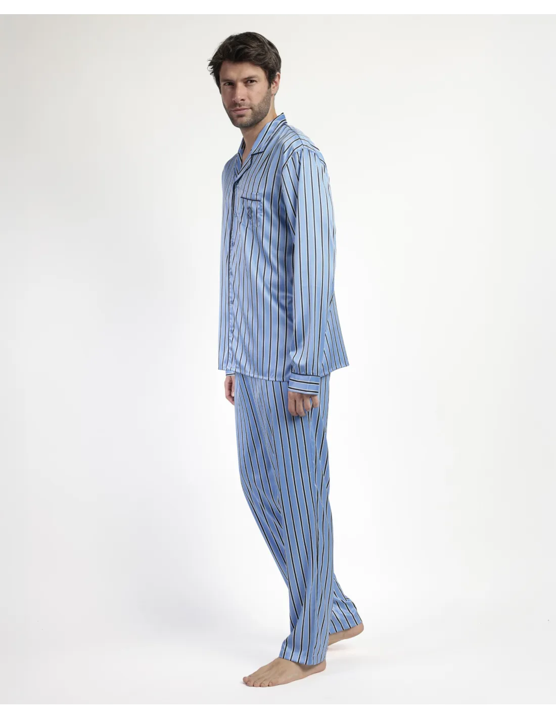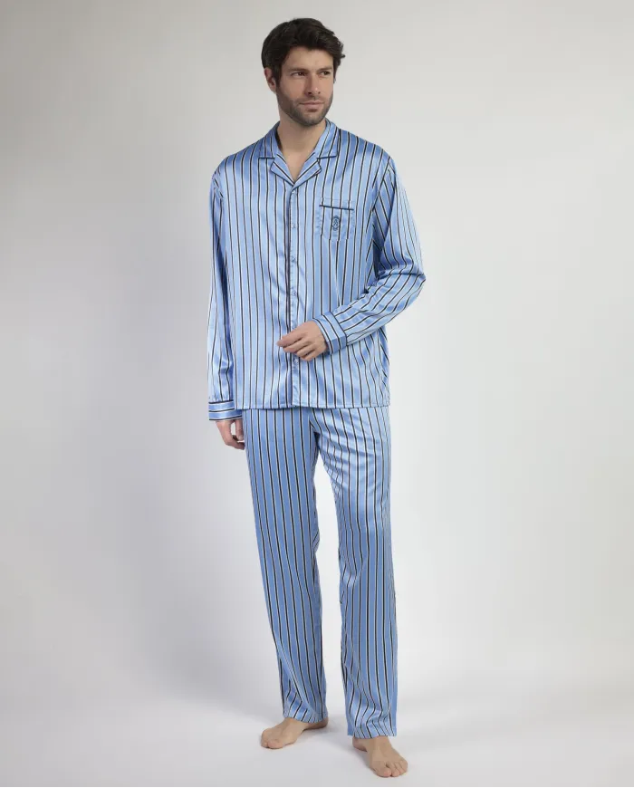 Pijama abierto de tela satén, de manga larga, cuello de solapa y pantalón largo. Encuentra este pijamas hombre para hombre en Lovehomewear, donde la comodidad y el estilo se combinan con la mejor calidad.