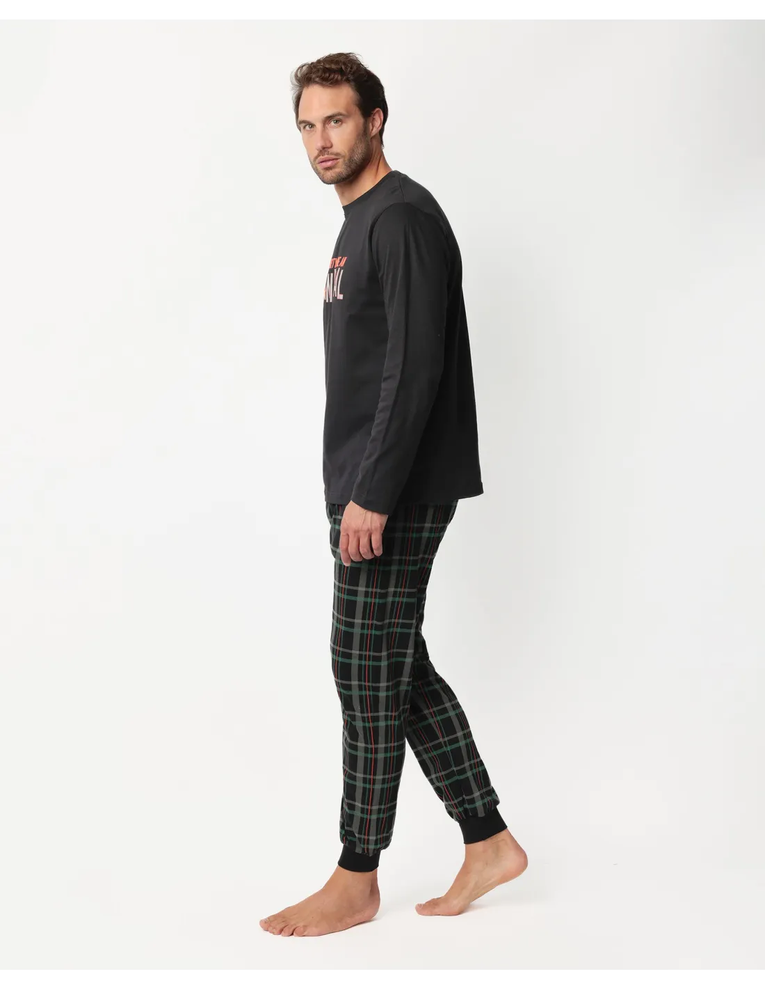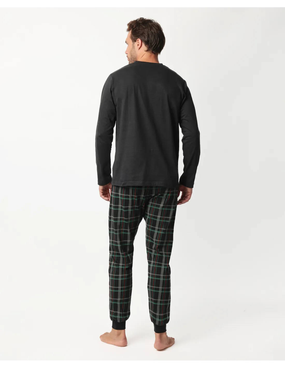 Pijama de punto de algodón, de manga larga, cuello redondo y pantalón largo. Encuentra este pijamas hombre para hombre en Lovehomewear, donde la comodidad y el estilo se combinan con la mejor calidad.
