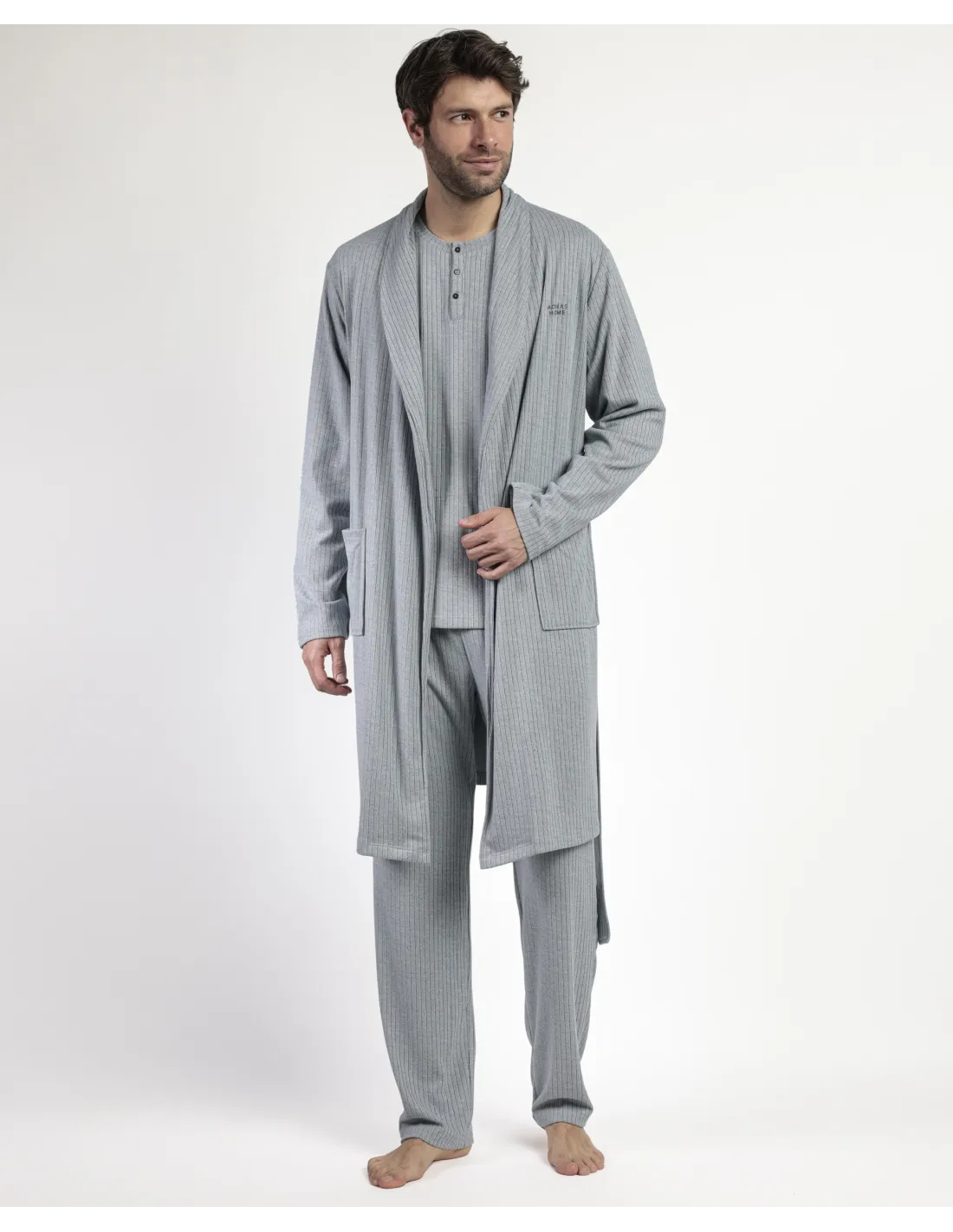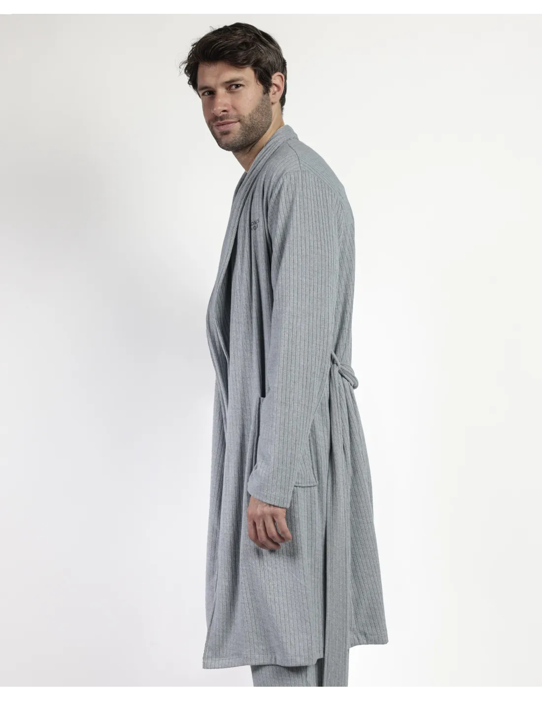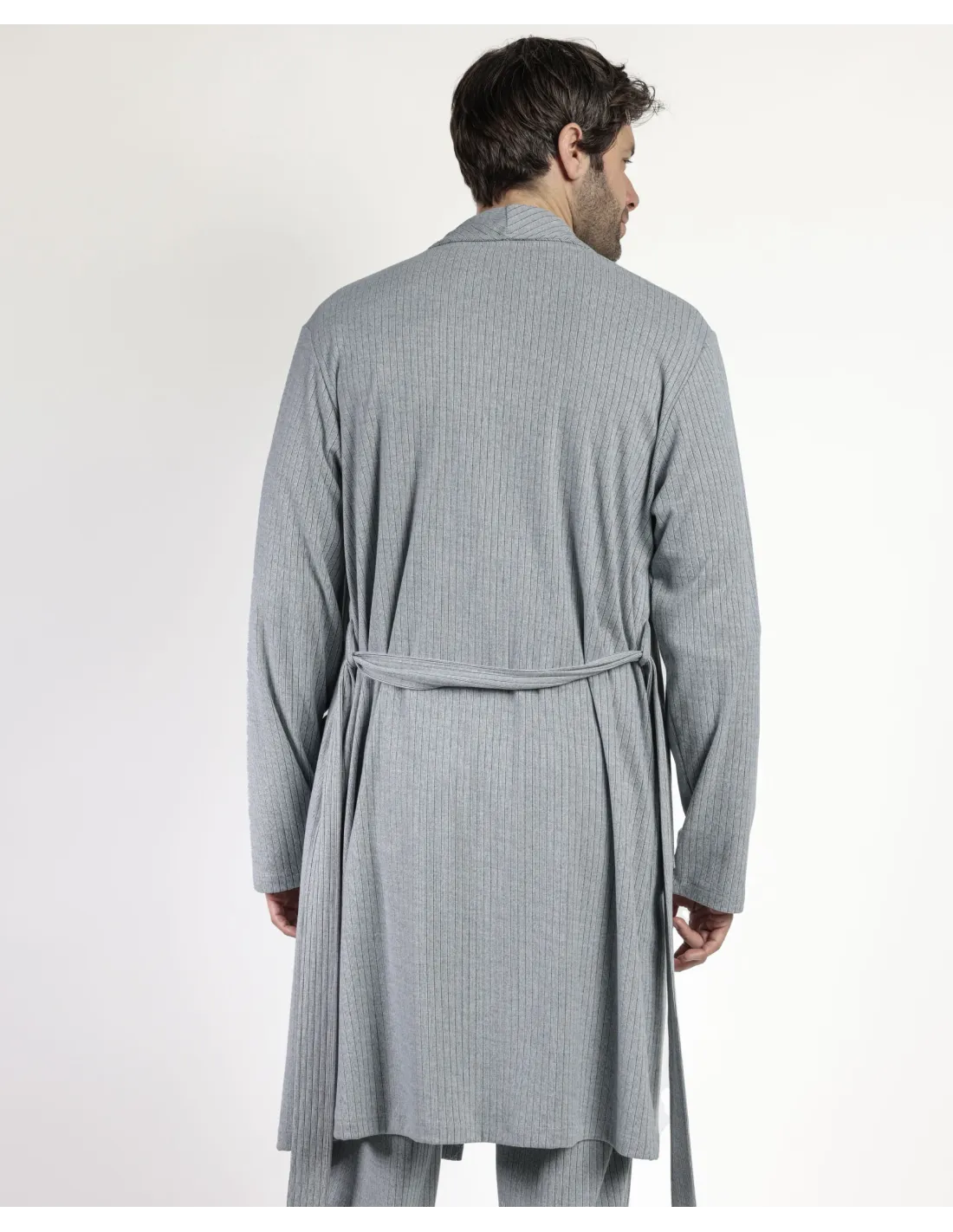Bata de punto canalé desagujado, de manga larga, en dos combinaciones de color: camel y azul. Encuentra este batas hombre para hombre en Lovehomewear, donde la comodidad y el estilo se combinan con la mejor calidad.